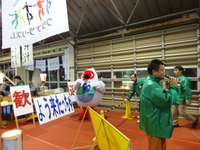 両津の体育館で歓迎会
