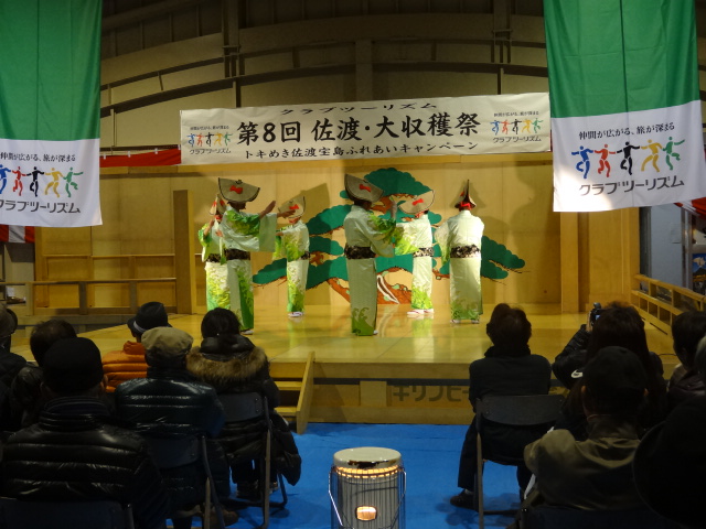 餅つき大会 相川踊りや佐渡おけさ 大黒舞 酒や焼き牡蠣 海鮮汁の振る舞い