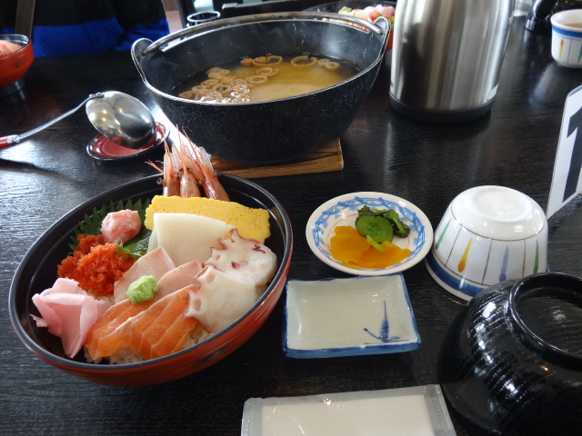 お昼は沿道のレストランで「海鮮丼」旨かった