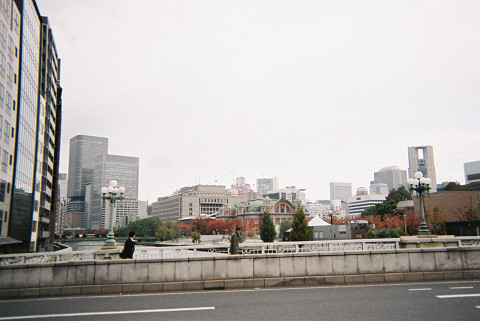 難波橋からみた中央公会堂と中の島(空の色が飛んでいる!!)