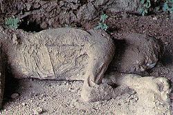 発掘後に推定された死者は2千余人、その多くは火砕流による窒息死であった。
