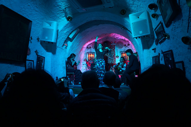 21時よりアルハンブル宮殿の近くの「洞窟フラメンコショー」に行く