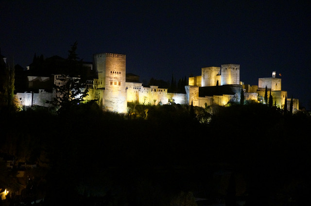 洞窟を出ると目の前に「アルハンブラ宮殿」のライトアップ