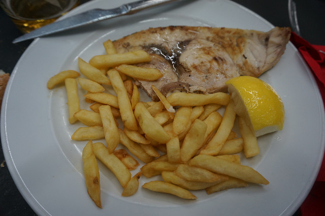 昼食は大聖堂の近くのレストランで魚料理