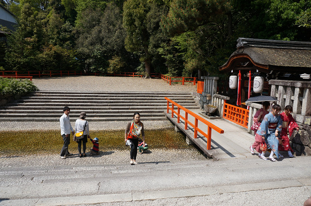 バス停から橋を渡れば糺の森(ただすのもり)の入り口に近い