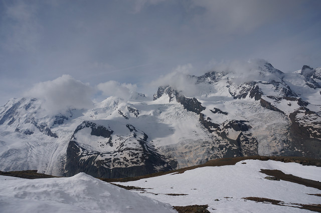 正面がモンテ・ローザ(最高峰は4634m)