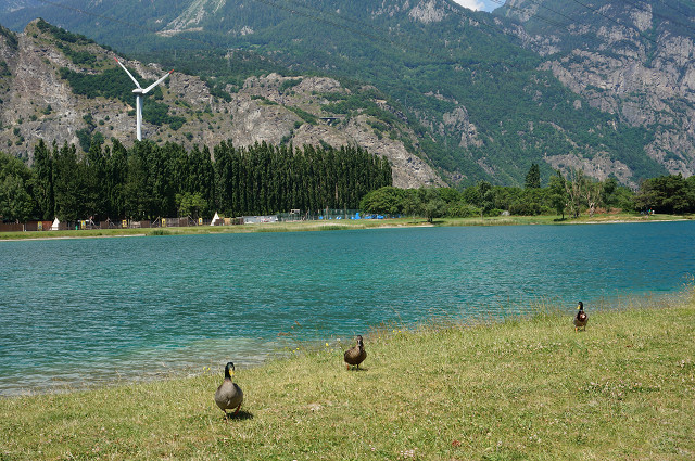 モンテ・ローザの下の方 望遠で見た湖