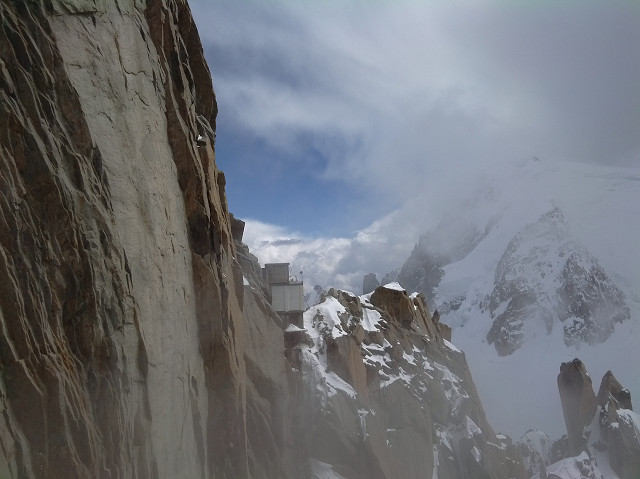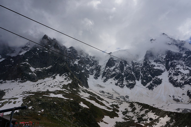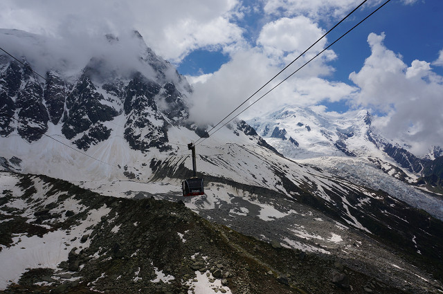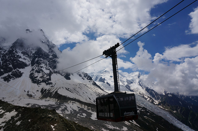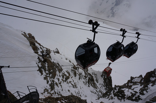 エギーユ・デュ・ミディ展望台(標高3842m)までは2回ロープウエイに乗る