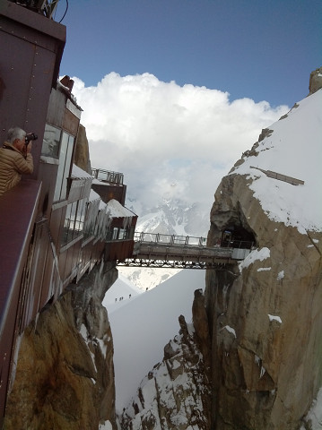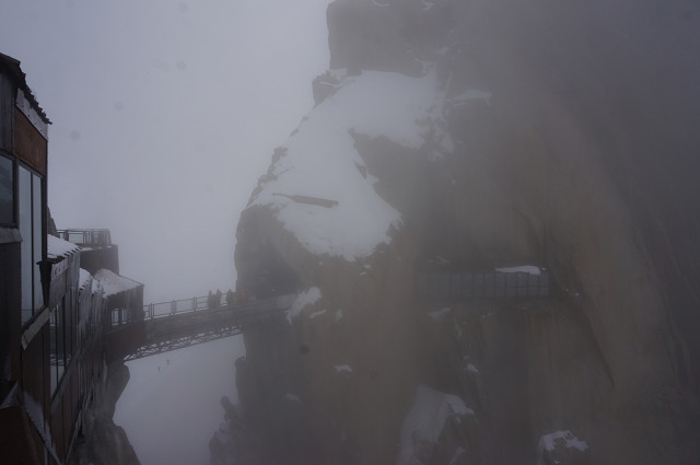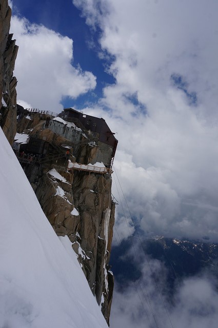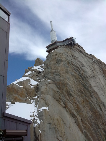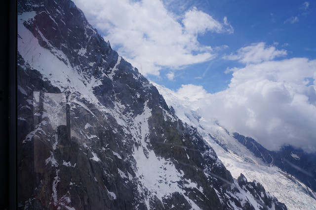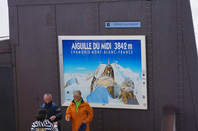 昼食後アルプス最高峰モンブラン(4810m)を望むエギーュ・デュ・ミディ展望台(3842m)