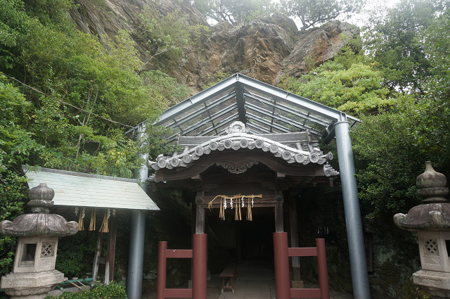 玉湯島神社の前の岩山の反対側の岩の中に祠がある