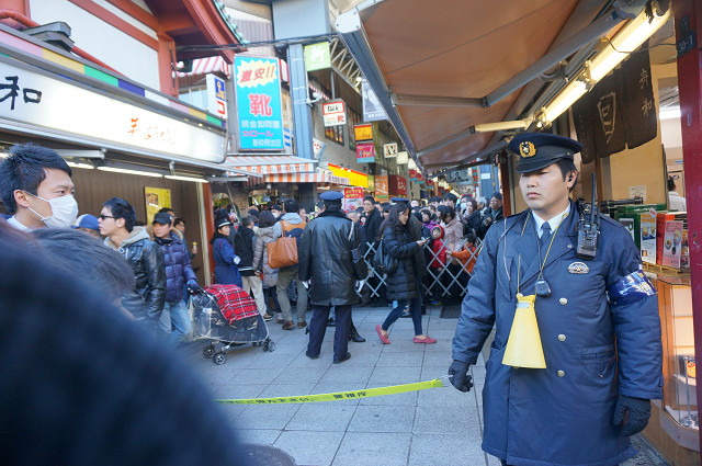 人で身動き取れない 警官が出て整理をしている