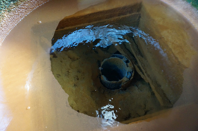 時間が経つと湯の成分の鉄などが酸化して赤くなる