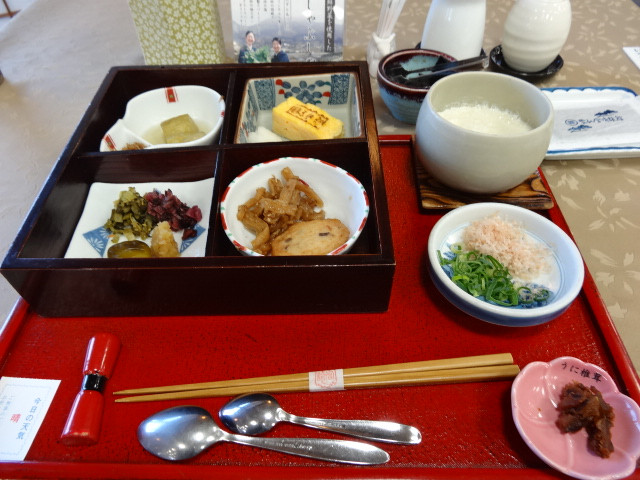 朝風呂に入りのんびり手つくり豆腐の旨い朝食をいただく
