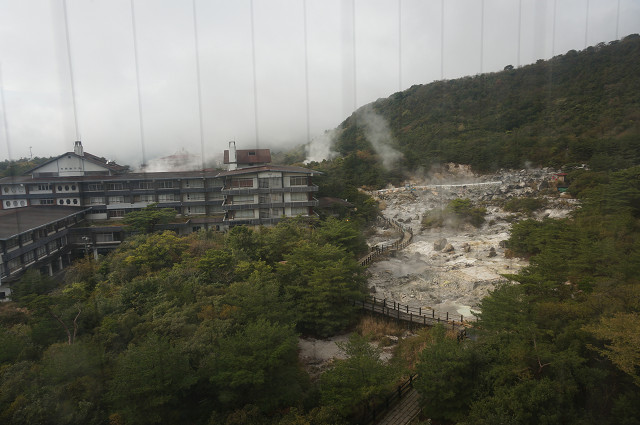 部屋に行くエレベーターから「地獄谷」が眼下に見える