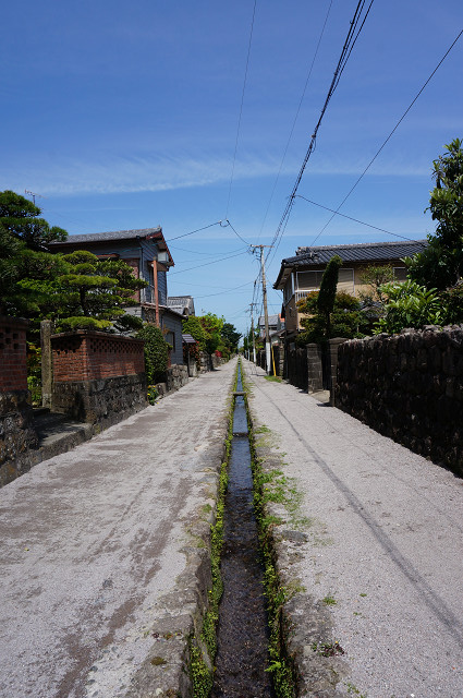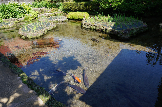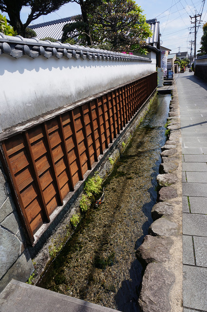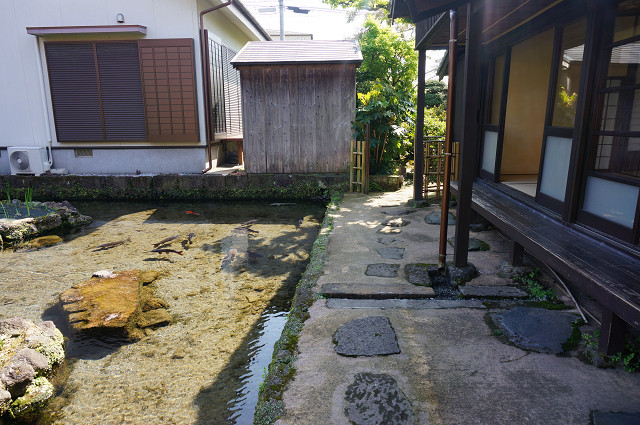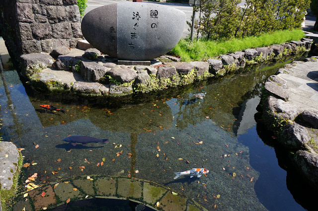 道の側溝には鯉が泳ぐ