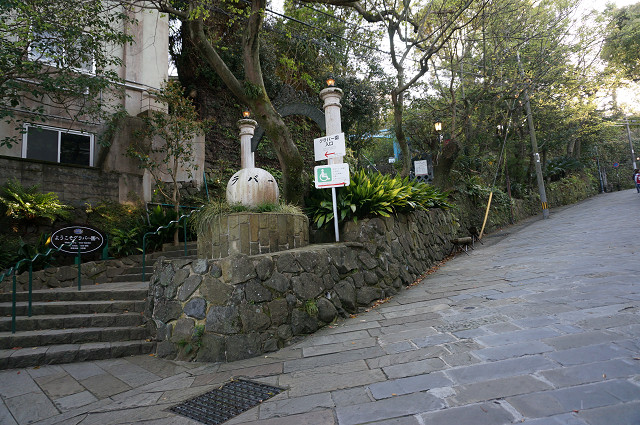 表示板にこの出島から山手に歩いて15分で「オランダ坂」「グラバー亭」と書いてある