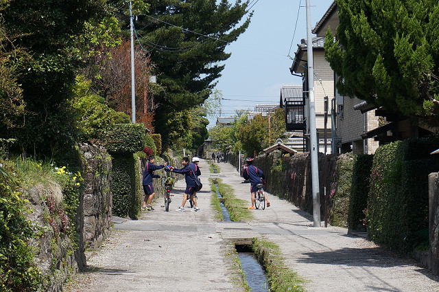 武家屋敷地区を歩いていると道で会う中学生だろうか