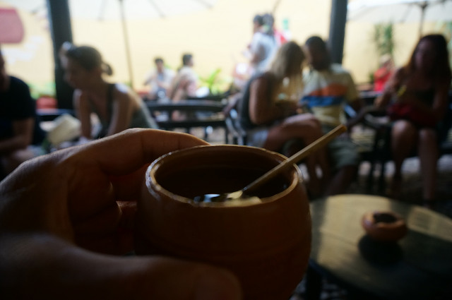 土器にラム酒と蜂蜜とレモンと冷水が入っている