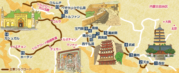 ウルムチ・敦煌で1週間から8日間である