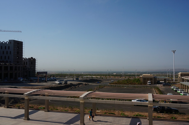 「柳園」駅周辺も全くの砂漠 あるのはタクシーと出迎えの観光バスのみ