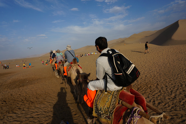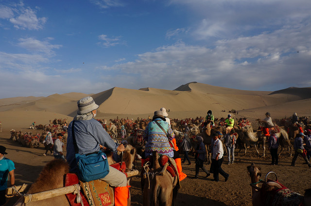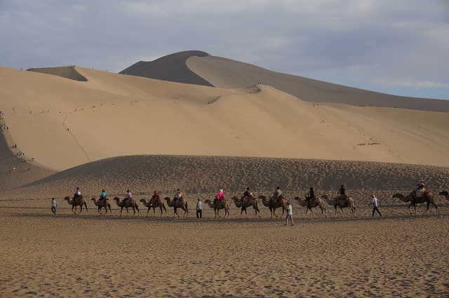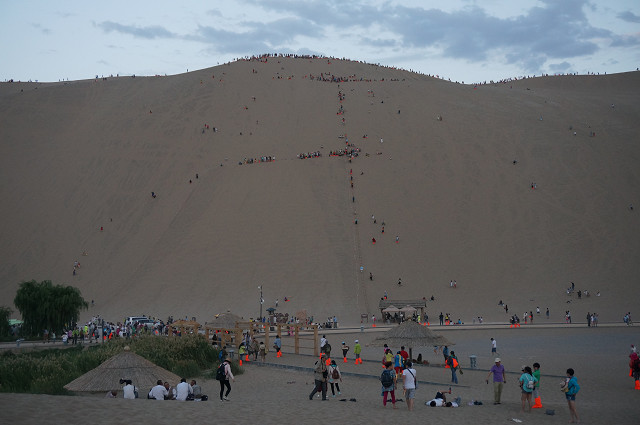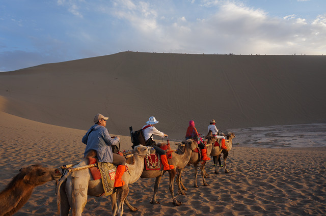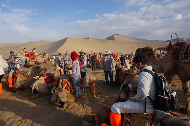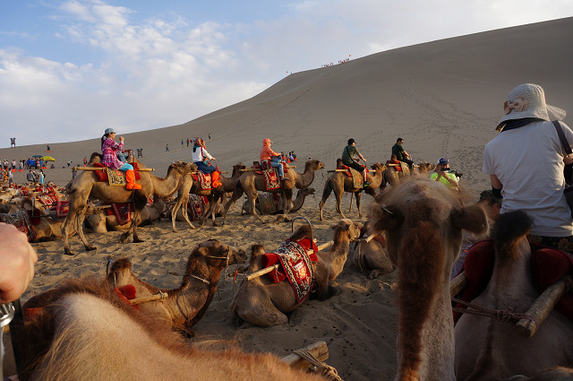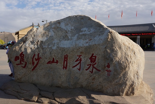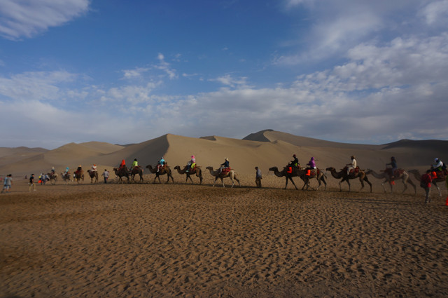 その後駱駝で鳴砂山に登り月牙泉に行く