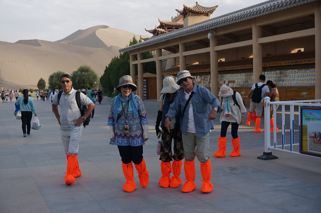 皆さん靴に砂が入らないように靴カバーを借りる 30元