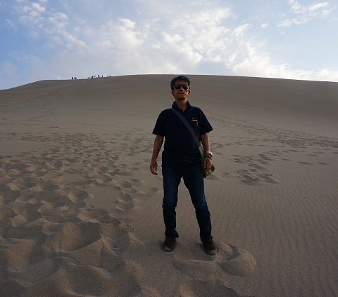 莫高窟の専用ガイド 彼は日本の城西大学に2年間交流学生で在籍していたそうだ