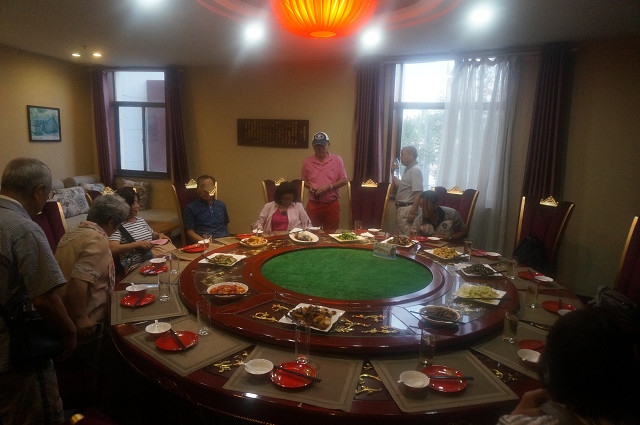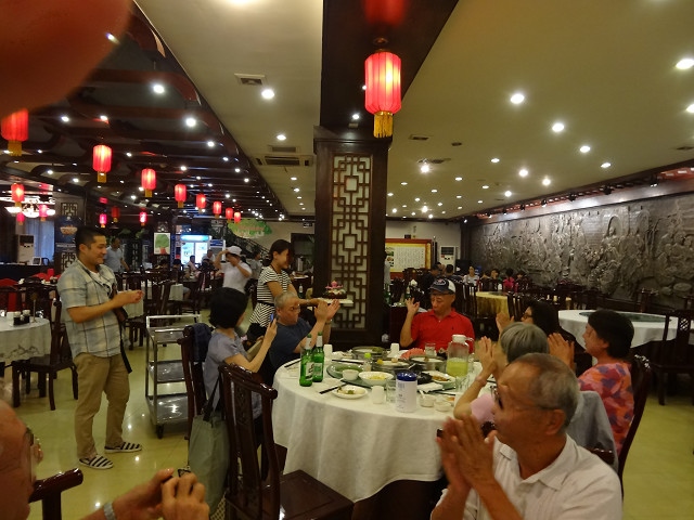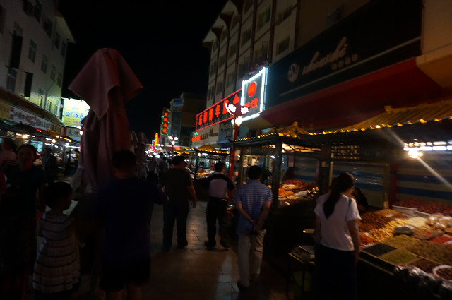 希望者はロビーに集まりガイドのチョーさんと敦煌の「夜市」に行く