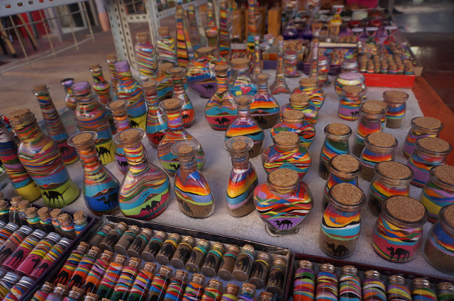 その間に持ち帰りを頼まれていたゴビ砂漠の砂をボトルに入れる