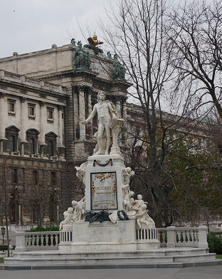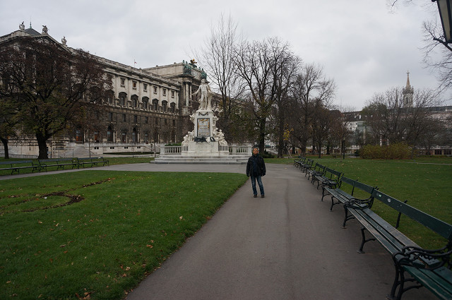 まずオペラ座から歩いて15分に「美術史博物館」に向かう 途中「ゲーテ像」「モーツアルト像」で撮影