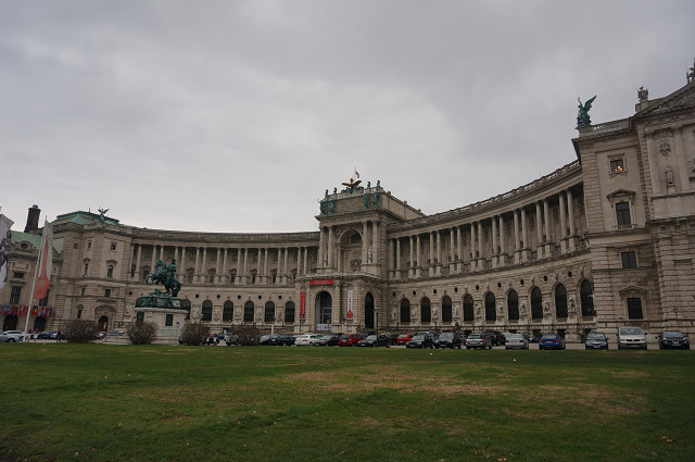 博物館で展示物の鑑賞とコーヒーを飲む出来れば昼食も摂る 博物館前はハクスブルグ家の王宮 一回りして