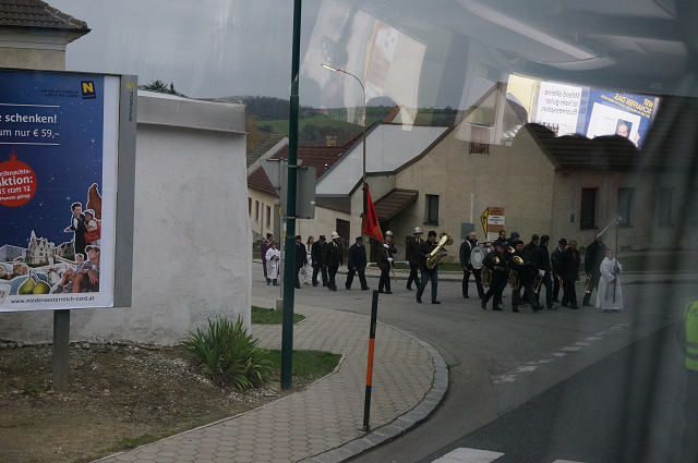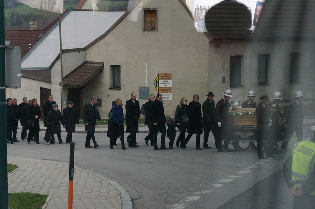 バスが停止したので覗くとお葬式