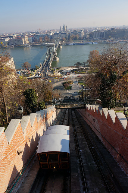 くさり橋とドナウ川から王宮に上がる140年前にできたケーブルカー