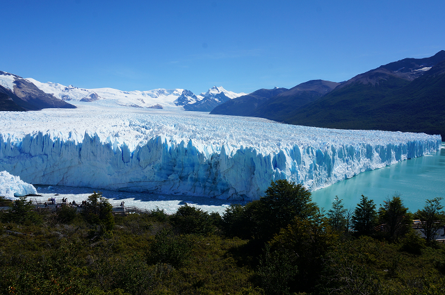 ぺリトモレノ氷河を展望台からとクルーズ船上で見ることになる
