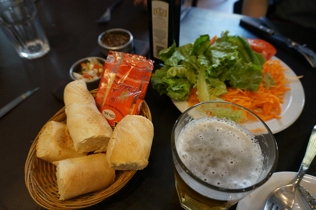 成田をでて初めてまともな食事にありつく