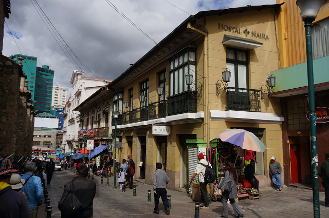 ラパスの繁華街サガルナガ通りやメルカド・ネグロには露天商や