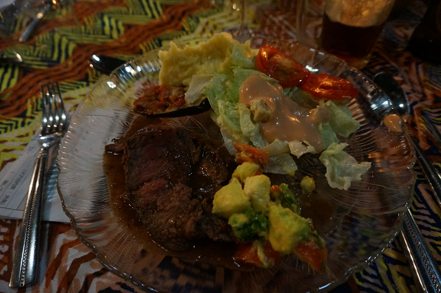 ガイドが今夜のメニューはヤクの肉ですとか言う