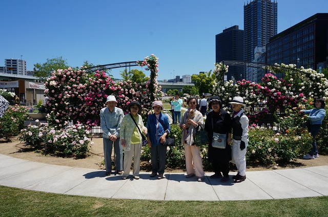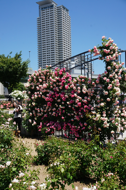 五月晴れの下 ご近所さんと大阪中之島のバラ園に行きました
