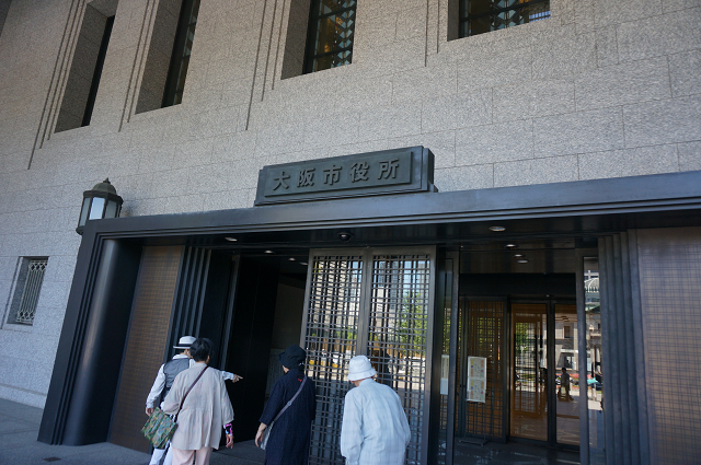 橋を渡ると大阪市役所があります