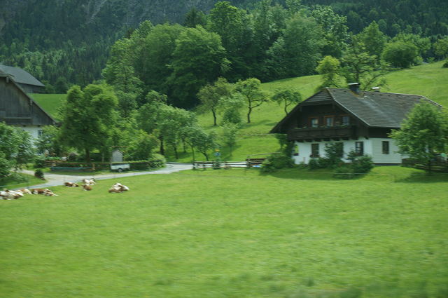 ザルツブルグ郊外は小アルプスの裾野が広がり牧畜の草地が繋がっている