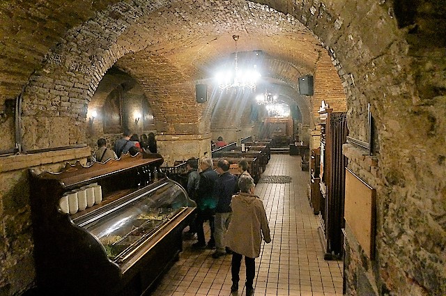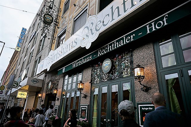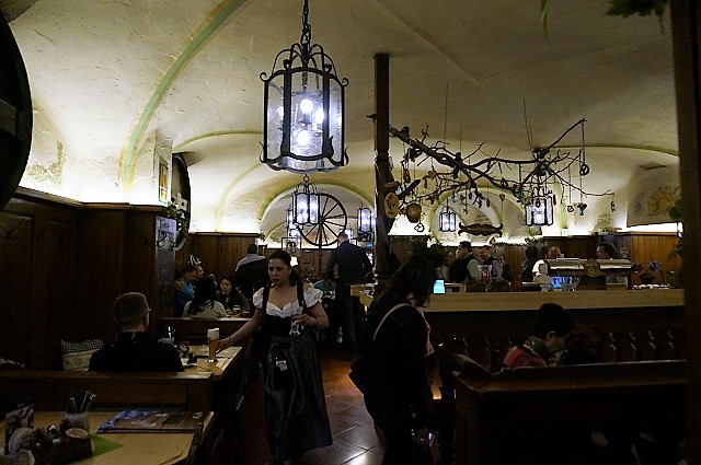 迎えのバスでミュンヘン市内のビアホールにて夕食