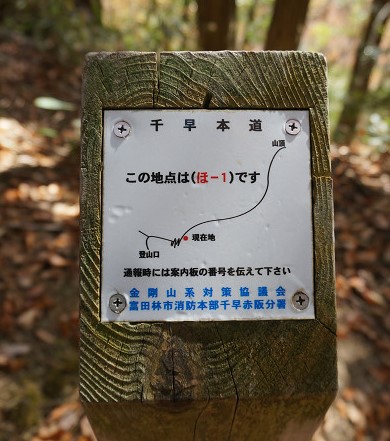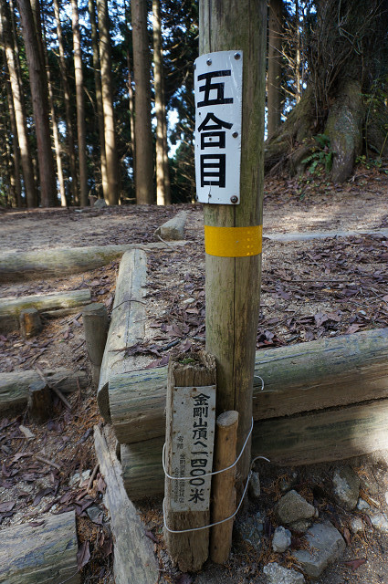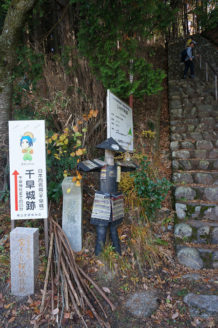 途中で合流するのだが目的の千早城跡に行くには急な階段の道を選ばなければならない