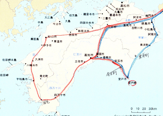 を超えて(ほとんどトンネル)高知市のJR高知駅まで行き「土佐くろしお鉄道」で御免・安芸から奈半利終点まで奈半利から路線バスで「室戸岬」駅まで行く