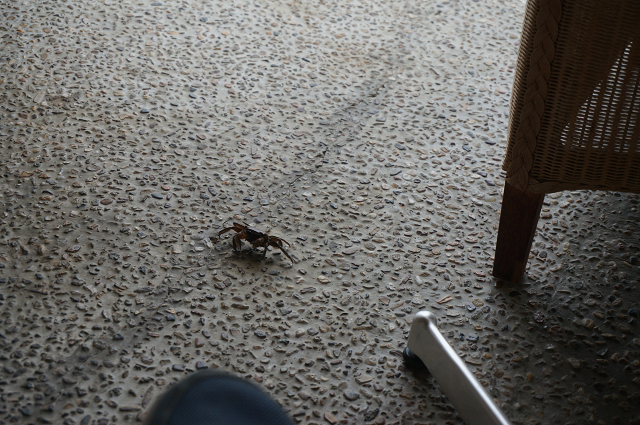 隣のレストランでアイスコーヒーを飲んでいると「わ~ ゴキブリ」とよく見たら蟹
