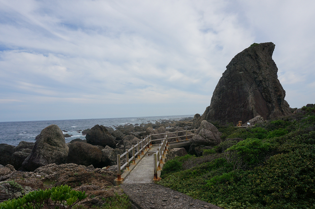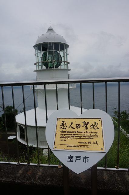 後ろは灯台と24番札所を擁する絶壁のような岬