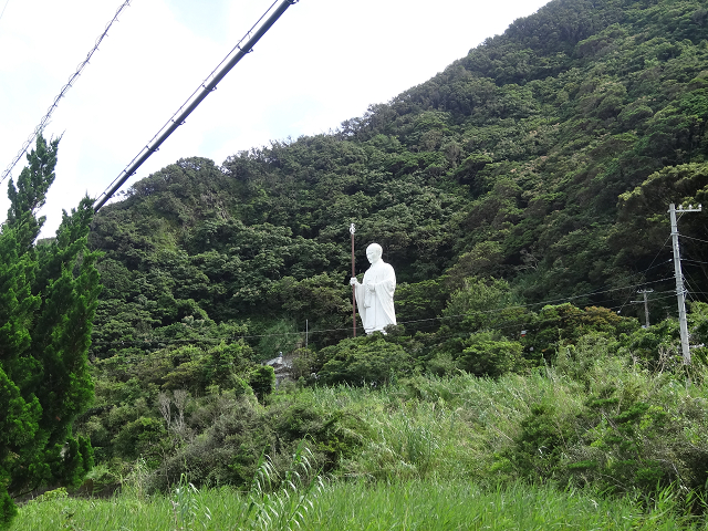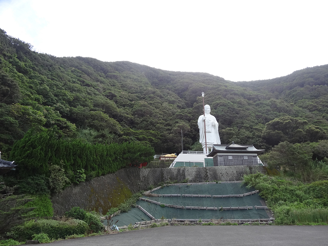 「へんろ道」を上がって灯台と24番札所最御崎寺に行き再び降りてきて御厨人窟から青年大師像から「シレストむろと」まで行く