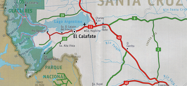 地図の真ん中がLago Argentino(アルゼンチン湖)