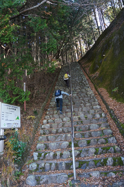 途中で合流するのだが目的の千早城跡に行くには急な階段の道を選ばなければならない