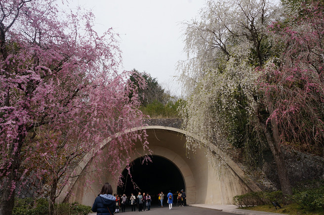 バスを降りた所から歩いてトンネルをぬけると玄関になる