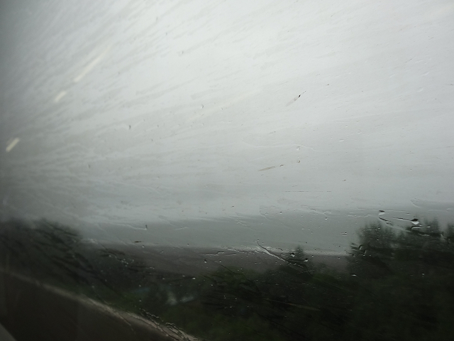 景色が見えるのはトンネルに入ると風圧で雨が飛ばされるトンネルから出て来た一瞬だけ